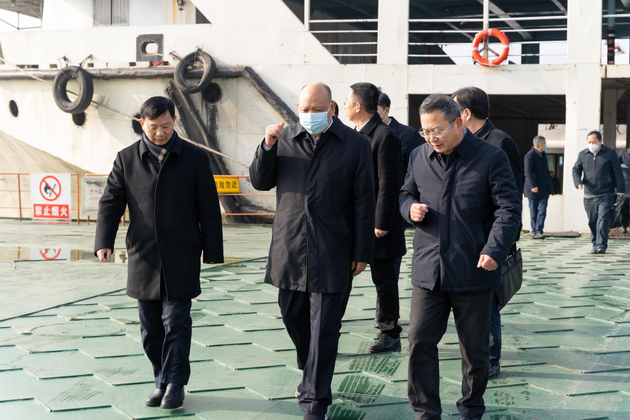 2月15日,副省長(zhǎng)李建中調(diào)研湘江航道及港口建設(shè)發(fā)展情況來(lái)到長(zhǎng)沙港霞凝港區(qū)實(shí)地考察。長(zhǎng)沙交通集團(tuán)黨委書(shū)記、董事長(zhǎng)李建國(guó),黨委副書(shū)記、董事、總經(jīng)理劉俊武在長(zhǎng)沙新港陪同考察。