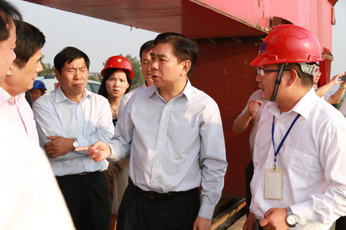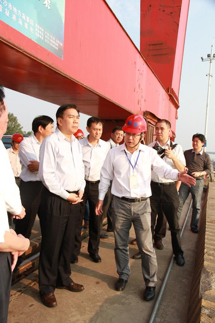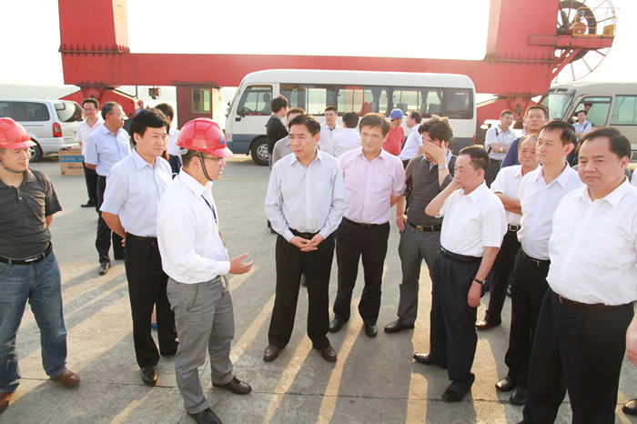 10月14日下午,國家發(fā)改委副主任徐憲平,交通運輸部綜合規(guī)劃司副司長蘇杰,國家發(fā)改委基礎產(chǎn)業(yè)司司長黃民,國家發(fā)改委規(guī)劃司副司長袁喜祿等領導一行,在湖南省人民政府副省長陳肇雄,長沙市領導余合泉等領導的陪同下就長江經(jīng)濟帶建設來長沙新港調(diào)研。湖南長沙新港有限責任公司董事長、總經(jīng)理、黨委副書記唐忠良,董事、副總經(jīng)理張韜,董事、長沙集星集裝箱碼頭有限公司副總經(jīng)理辛華等接待。 在長沙新港集裝箱碼頭上,集星公司副總經(jīng)理辛華首先向徐憲平副主任一行介紹了長沙新港一、二期碼頭規(guī)模、貨源、業(yè)務、運營等情況,著重介紹了湘江長沙綜合樞紐試通航初期和長沙海事為長沙新港開辟樞紐“綠色通道”后,碼頭業(yè)務及生產(chǎn)情況對比。辛華介紹說:“樞紐‘綠色通道’開辟以來,船舶進出閘通過艘次提高26.84%;集裝箱吞吐量達46412標箱,比‘綠色通道’開辟之前提高86.28%。”隨后,新港公司副總經(jīng)理張韜向徐憲平副主任一行介紹了三期工程規(guī)劃、建成規(guī)模、建設進展等情況。 徐憲平副主任指出,湖南這些年發(fā)展迅速,強大的水運網(wǎng)絡給予了湖南對外經(jīng)濟發(fā)展強大的支持。長沙新港碼頭地理位置優(yōu)越,硬件設施完備,足夠滿足碼頭日常生產(chǎn)需求;港口規(guī)劃及管理科學規(guī)范,集裝箱碼頭管理系統(tǒng)十分先進;碼頭生產(chǎn)井然有序,一派繁忙景象。徐憲平副主任肯定了長沙新港這幾年建設、經(jīng)營所取得的成績并強調(diào),三期建成后,港口功能將更加完善,有望成為國內(nèi)一流的現(xiàn)代化內(nèi)河港口,長沙新港前景可觀。 |
