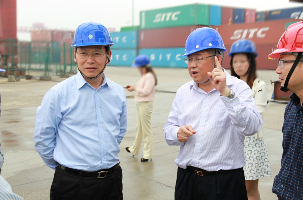 袁建堯詳細(xì)詢問了碼頭建設(shè)、貨源、業(yè)務(wù)和吞吐量等情況,新港公司董事長唐忠良向袁建堯一行介紹了長沙新港一、二期碼頭業(yè)務(wù)、運(yùn)營,及三期工程建設(shè)進(jìn)展等情況。同時提出兩點(diǎn)請求:1、請求協(xié)調(diào)部、省交通運(yùn)輸廳三期工程補(bǔ)助資金盡快到位,以保證三期工程建設(shè)的順利進(jìn)行;2、請求協(xié)調(diào)解決南門港至湘陰大橋段的航道疏浚問題,以確?菟谙娼降赖娜暢通。長沙市地方海事局胡曉東向領(lǐng)導(dǎo)介紹,霞凝港是二類水運(yùn)口岸,海關(guān)直接在此監(jiān)管,報關(guān),送檢,貨物經(jīng)過這一系列流程后,可裝箱直接發(fā)往上海港中轉(zhuǎn)至世界各地港口。袁建堯強(qiáng)調(diào)要加強(qiáng)安全生產(chǎn)、安全作業(yè),要特別注意安全。
