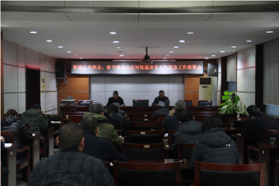 公司領導高度重視,召開工作部署緊急會議。 1月25日下午五點半,新港公司召開“兩會春節(jié)維穩(wěn)及應對低溫冰雪天氣緊急工作部署會”。會上,首先由公司副總辛華同志傳達了市政府《關于進一步做好應對低溫雨雪冰凍天氣工作的緊急通知》以及交通集團領導對維穩(wěn)和安全工作的指示精神,并針對新港公司實際情況要求各部門和單位采取措施,做好應對防范工作。接著,新港公司黨委書記、董事長唐忠良同志做出重要指示,當前公司工作重點要放在安全和維穩(wěn)上,公司領導要帶班值班,親臨一線,靠前指揮,第一時間處理突發(fā)問題。他還要求公司各部門負責人要從思想上高度重視極端天氣給碼頭生產(chǎn)作業(yè)造成的惡劣影響,要積極行動采取有效措施應對低溫雨雪冰凍天氣。  各部門主動作為,多方聯(lián)動,一線防范應對。 辦公室通過公司自媒體加強宣傳工作,溫馨提示員工上下班途中注意交通安全。安保部嚴格按照交通集團領導要求,落實24小時值班制度,值班人員堅守崗位,保證通訊暢通,每天定時向交通集團匯報安全情況。設備部緊急采購麻袋、工業(yè)鹽和草繩等防凍物資,同時維修人員頂著嚴寒冒著凍雨搶修和維護生產(chǎn)作業(yè)設備,保證設備良好運轉。生產(chǎn)運營部密切關注碼頭前沿作業(yè)情況,在確保安全的前提下,搶卸船舶重要物資。市場營銷部積極與客戶溝通,及時做好解釋工作。新港三期工程部與施工方對接,確保三期工程建設安全。