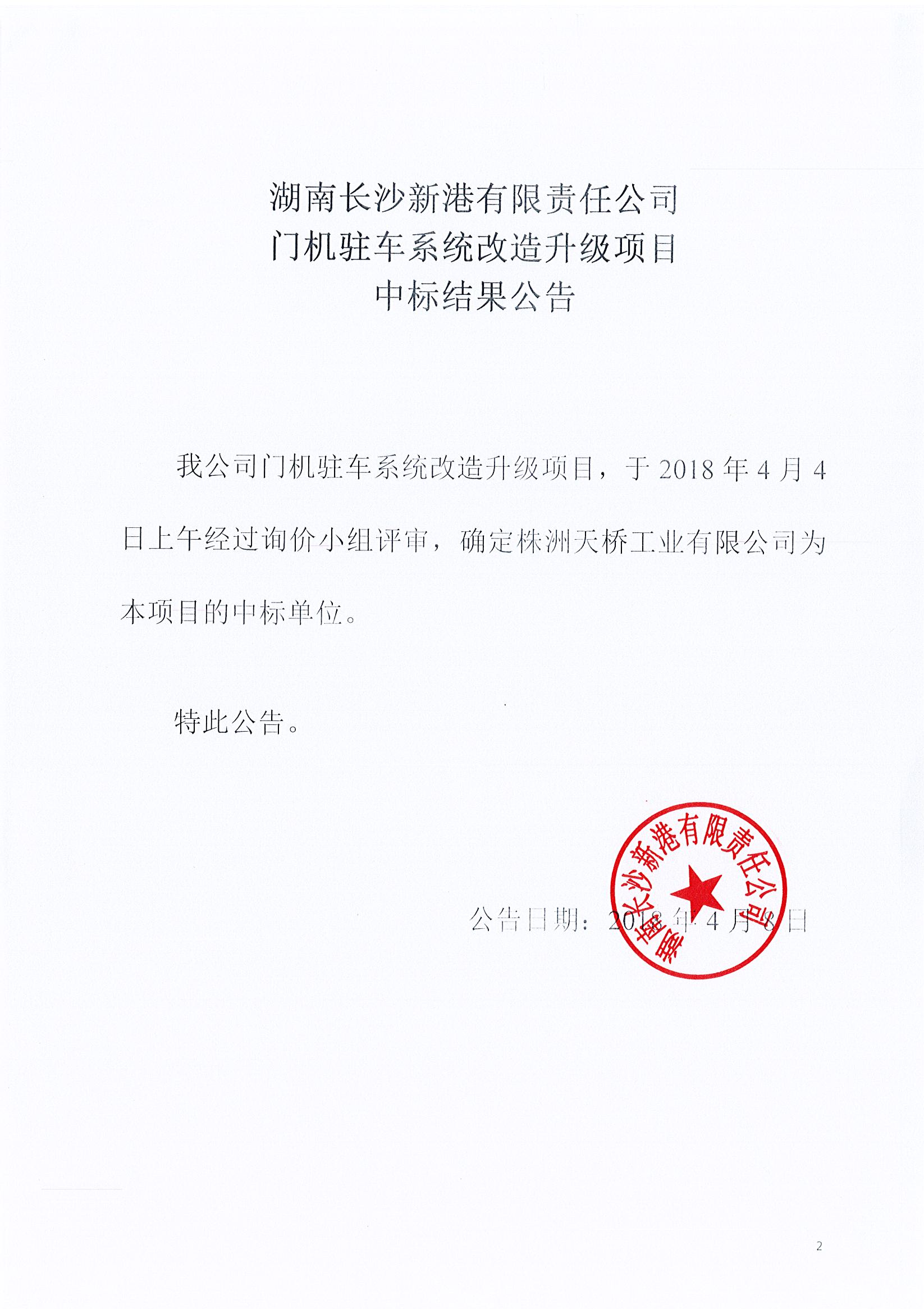 湖南長沙新港有限責(zé)任公司 門機(jī)駐車系統(tǒng)改造升級項(xiàng)目中標(biāo)結(jié)果公告