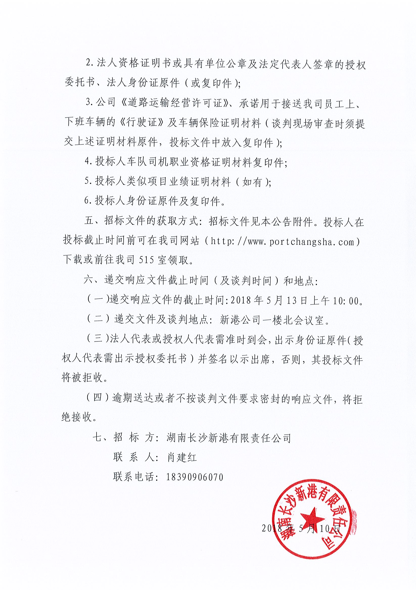 湖南長沙新港有限責(zé)任公司 員工交通班車租賃項目競爭性談判邀請公告(延期)