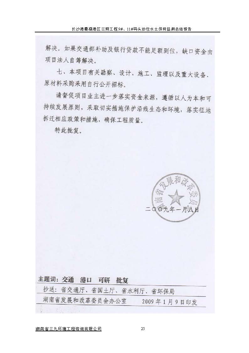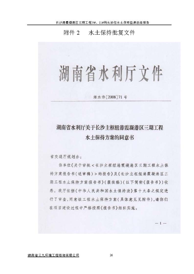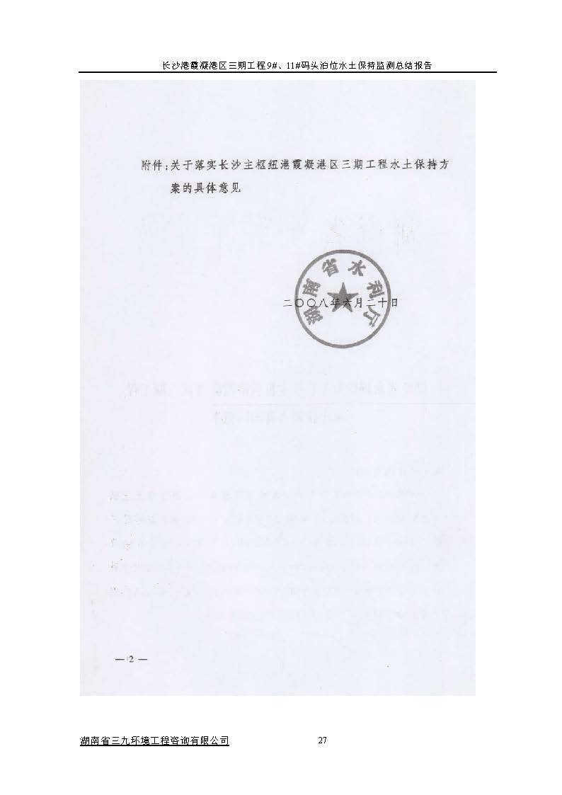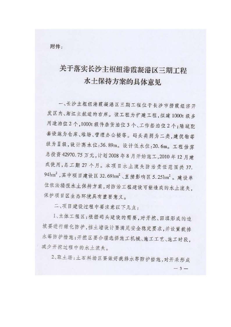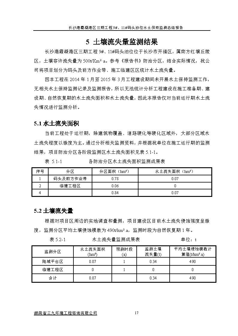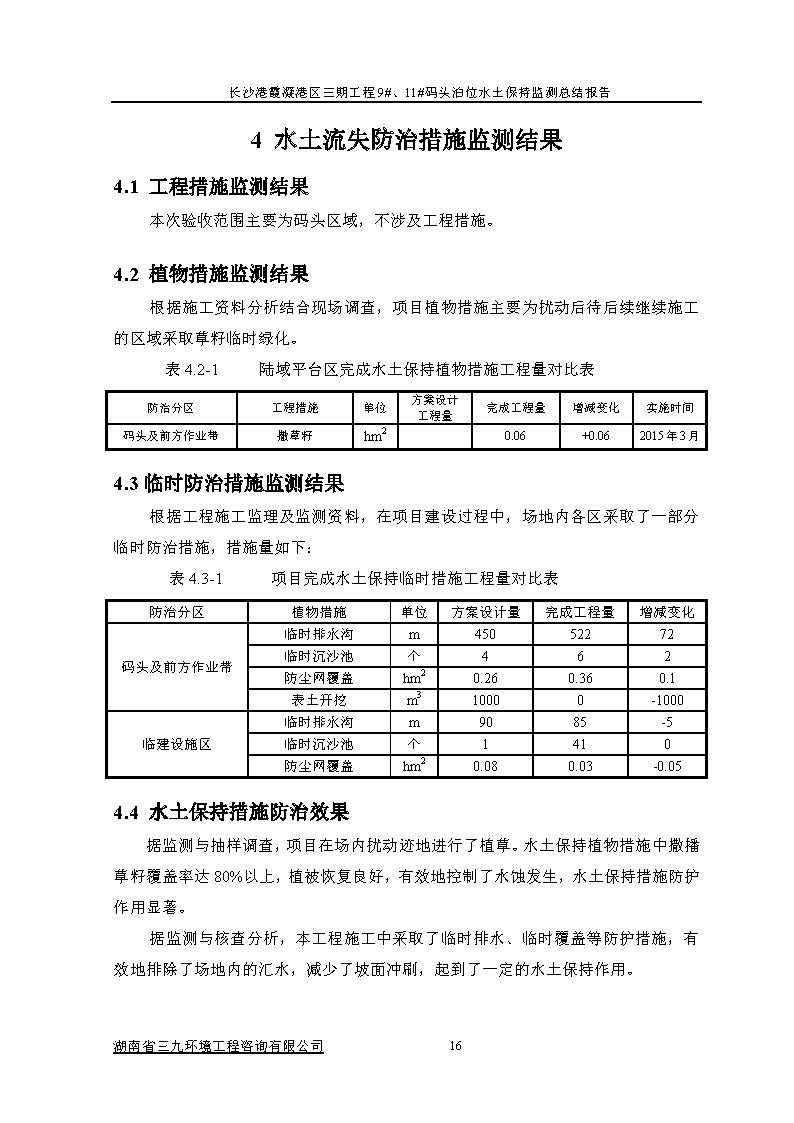 根據(jù)水利部關(guān)于加強事中事后監(jiān)管規(guī)范生產(chǎn)建設(shè)項目水土保持設(shè)施自主驗收的通知(水保(2017) 365號)、《湖南省水利廳關(guān)于下放部分生產(chǎn)建設(shè)項目水土保持方案審批權(quán)限的通知》(湘水辦[2017]116號)和《長沙市水務(wù)局關(guān)于簡化生產(chǎn)建設(shè)項目水土保持方案及水土保持設(shè)施驗收有關(guān)事項的通知》(長水發(fā)〔2017〕27號)規(guī)定,2018年7月3日,湖南長沙新港有限責任公司主持召開了長沙港霞凝港區(qū)三期工程9#、11#碼頭泊位水土保持設(shè)施驗收會議,會議成立了驗收組。 通過深入工程現(xiàn)場核查,并查閱相關(guān)檔案資料,驗收小組認為本工程積極落實了各施工區(qū)域的水土流失防治工作,水土保持設(shè)施質(zhì)量總體合格,水土流失防治指標達到了水土保持方案確定的目標值,符合水土保持設(shè)施竣工驗收的條件。驗收組一致同意長沙港霞凝港區(qū)三期工程9#、11#碼頭泊位水土保持設(shè)施通過驗收。經(jīng)驗收組與會議審議,形成了《長沙港霞凝港區(qū)三期工程9#、11#碼頭泊位水土保持設(shè)施自查驗收鑒定書》。