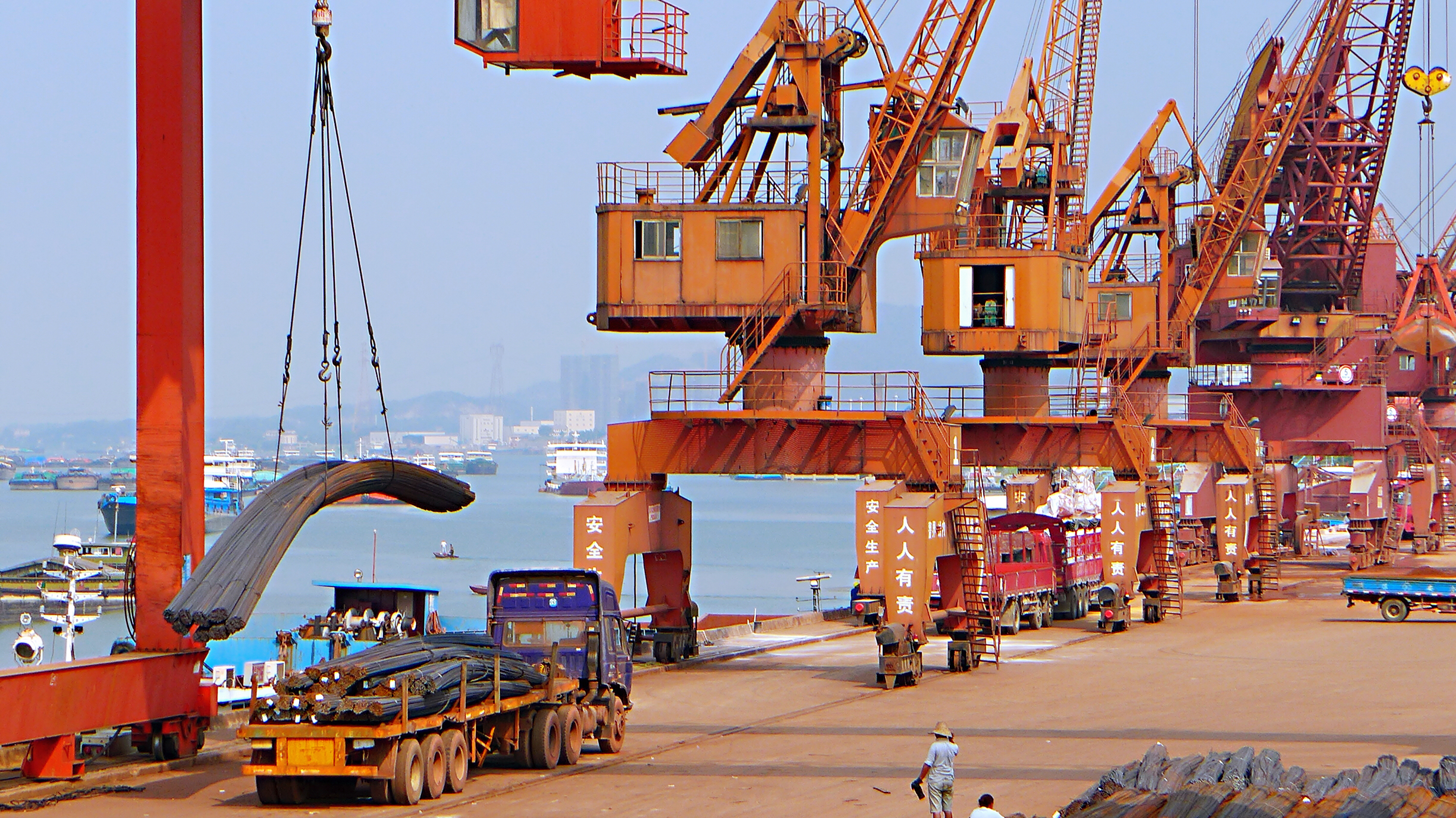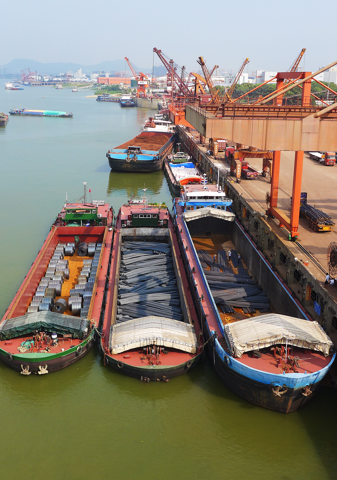 9月5日,長(zhǎng)沙新港碼頭貨物裝卸呈現(xiàn)一派繁忙景象。借助“一帶一路”倡議和長(zhǎng)江經(jīng)濟(jì)帶國(guó)家戰(zhàn)略。