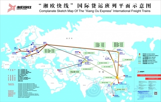 在長(zhǎng)沙鐵路貨運(yùn)新北站,來(lái)自湖南省內(nèi)及江西等省份的貨物集中于此,電子產(chǎn)品、鞋服等出口貨物裝上中歐班列(長(zhǎng)沙),不到20天就能抵達(dá)歐洲。圖為湘歐快線最新線路圖。 10月16日,從北京傳來(lái)好消息,第五屆中國(guó)國(guó)際物流發(fā)展大會(huì)將于11月16日至17日在長(zhǎng)沙舉行,這是該會(huì)議首次落子中部地區(qū)。屆時(shí)將邀請(qǐng)來(lái)自全球70多個(gè)國(guó)家和地區(qū)的物流行業(yè)專家等千余人參加,圍繞“一帶一路”倡議建設(shè)相關(guān)產(chǎn)業(yè)等重點(diǎn)領(lǐng)域的痛點(diǎn)進(jìn)行交流與探討。 大會(huì)為何會(huì)選擇移師長(zhǎng)沙,物流行業(yè)大咖為何紛紛前來(lái)這座文化古城進(jìn)行交流并尋找商機(jī)。長(zhǎng)沙又是用怎樣的優(yōu)勢(shì)來(lái)吸引物流“大咖”的目光?現(xiàn)在不妨跟隨紅網(wǎng)時(shí)刻記者一起感受下長(zhǎng)沙物流的魅力吧。 開放物流:全面推進(jìn)長(zhǎng)沙東部地區(qū)“通江達(dá)海” 近幾年,中央提出“一帶一路”“長(zhǎng)江經(jīng)濟(jì)帶”兩大發(fā)展戰(zhàn)略,湖南立足“一帶一部”定位提出了“創(chuàng)新引領(lǐng)、開放崛起”戰(zhàn)略,省會(huì)長(zhǎng)沙規(guī)劃建設(shè)“東部開放型經(jīng)濟(jì)走廊”……這些戰(zhàn)略的出臺(tái)都在昭示著物流“開放”的重要性。 2018年9月,長(zhǎng)沙市發(fā)改委下發(fā)的《長(zhǎng)沙東部開放型經(jīng)濟(jì)走廊發(fā)展規(guī)劃(2018—2025)》(簡(jiǎn)稱《規(guī)劃》)序言中的幾句話,道出了長(zhǎng)沙交通物流的魅力所在,也道出了對(duì)長(zhǎng)沙推動(dòng)?xùn)|部開放型經(jīng)濟(jì)走廊建設(shè)的展望。 打造東部開放型經(jīng)濟(jì)走廊是長(zhǎng)沙實(shí)現(xiàn)“開放崛起”戰(zhàn)略的重大部署,也是其向東發(fā)展的展望。這個(gè)位于長(zhǎng)沙東部地區(qū)的經(jīng)濟(jì)走廊被定位為長(zhǎng)沙全面建設(shè)現(xiàn)代化的開放引擎、湖南全面融入長(zhǎng)江經(jīng)濟(jì)帶的戰(zhàn)略支點(diǎn)、湖南發(fā)揮“一帶一部”功能的核心樞紐和內(nèi)陸地區(qū)開放創(chuàng)新的示范高地。 根據(jù)《規(guī)劃》,長(zhǎng)沙東部開放型經(jīng)濟(jì)走廊規(guī)劃形成“一核(三翼)三軸七組團(tuán)”的空間布局。值得一提的是,主走廊“一核三翼”的城鄉(xiāng)空間布局,即以臨空經(jīng)濟(jì)示范區(qū)和長(zhǎng)沙新港為核心區(qū)。 《規(guī)劃》提出,主走廊重點(diǎn)發(fā)揮航空城、高鐵會(huì)展新城、長(zhǎng)沙新港所包圍的核心區(qū)的極化作用,加速發(fā)展臨空、臨鐵、臨港經(jīng)濟(jì),全面推進(jìn)長(zhǎng)沙東部地區(qū)“通江達(dá)海”戰(zhàn)略。 其中,航空城增長(zhǎng)極以航空城為核心,高鐵會(huì)展新城增長(zhǎng)極要發(fā)揮高鐵南站交通樞紐優(yōu)勢(shì),長(zhǎng)沙新港增長(zhǎng)極,要依托長(zhǎng)沙新港、長(zhǎng)沙北站、金霞保稅物流中心、銅官港區(qū),搭建水路、鐵路、公路型物流平臺(tái),打造“現(xiàn)代化區(qū)域性國(guó)際物流中心”。規(guī)劃將湘陰漕溪港和岳陽(yáng)城陵磯作為長(zhǎng)沙深水外港,將上海崇明港作為深水“飛港”,將長(zhǎng)沙港打造成專業(yè)化運(yùn)輸核心港區(qū)和全國(guó)內(nèi)河主樞紐港口,構(gòu)建通江達(dá)海的現(xiàn)代化內(nèi)河水運(yùn)系統(tǒng)。 金霞魅力:水、鐵、公聯(lián)運(yùn),物流更順暢