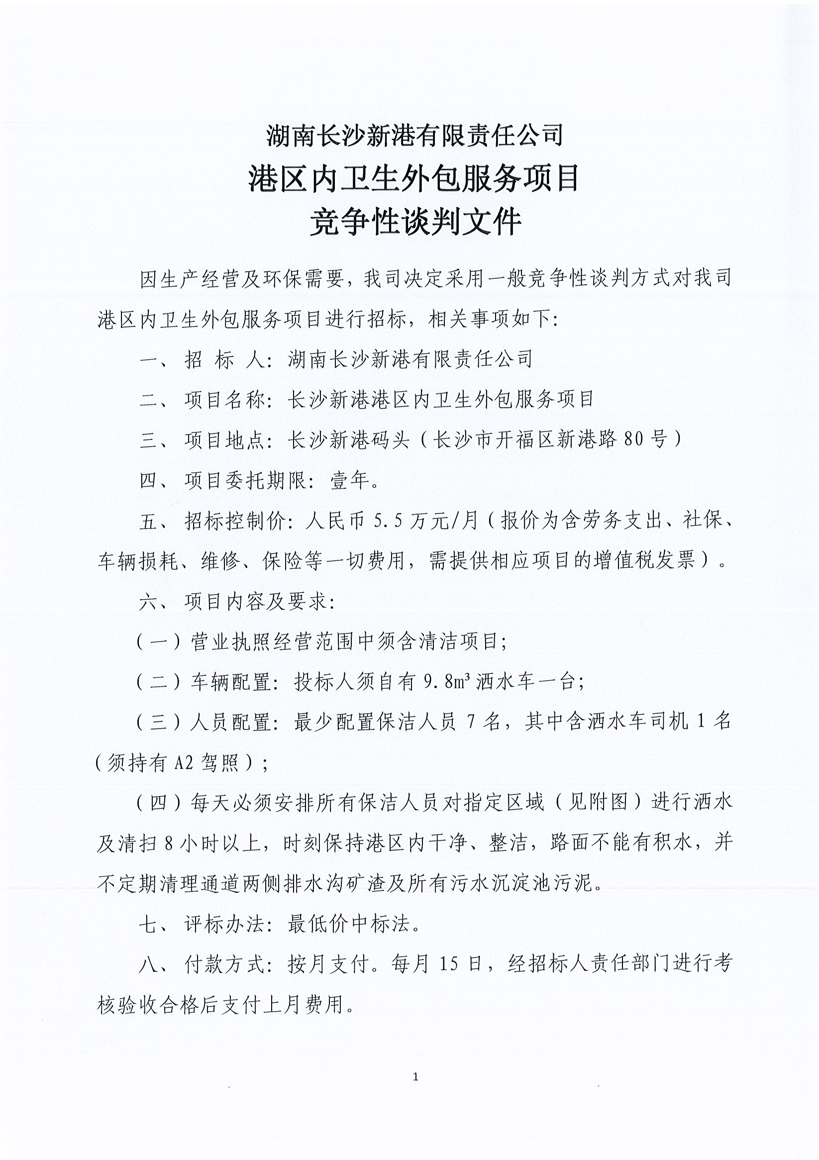 湖南長(zhǎng)沙新港有限責(zé)任公司 港區(qū)內(nèi)衛(wèi)生外包服務(wù)競(jìng)爭(zhēng)性談判邀請(qǐng)公告