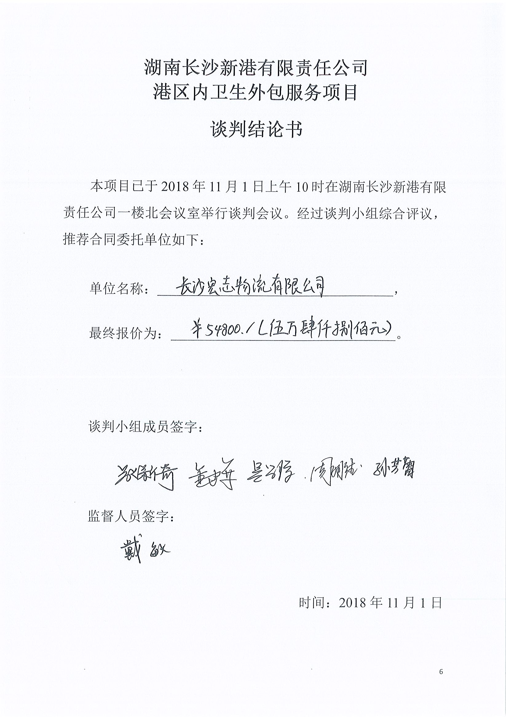 湖南長沙新港有限責任公司港區(qū)內(nèi)衛(wèi)生外包服務項目中標結(jié)果公示