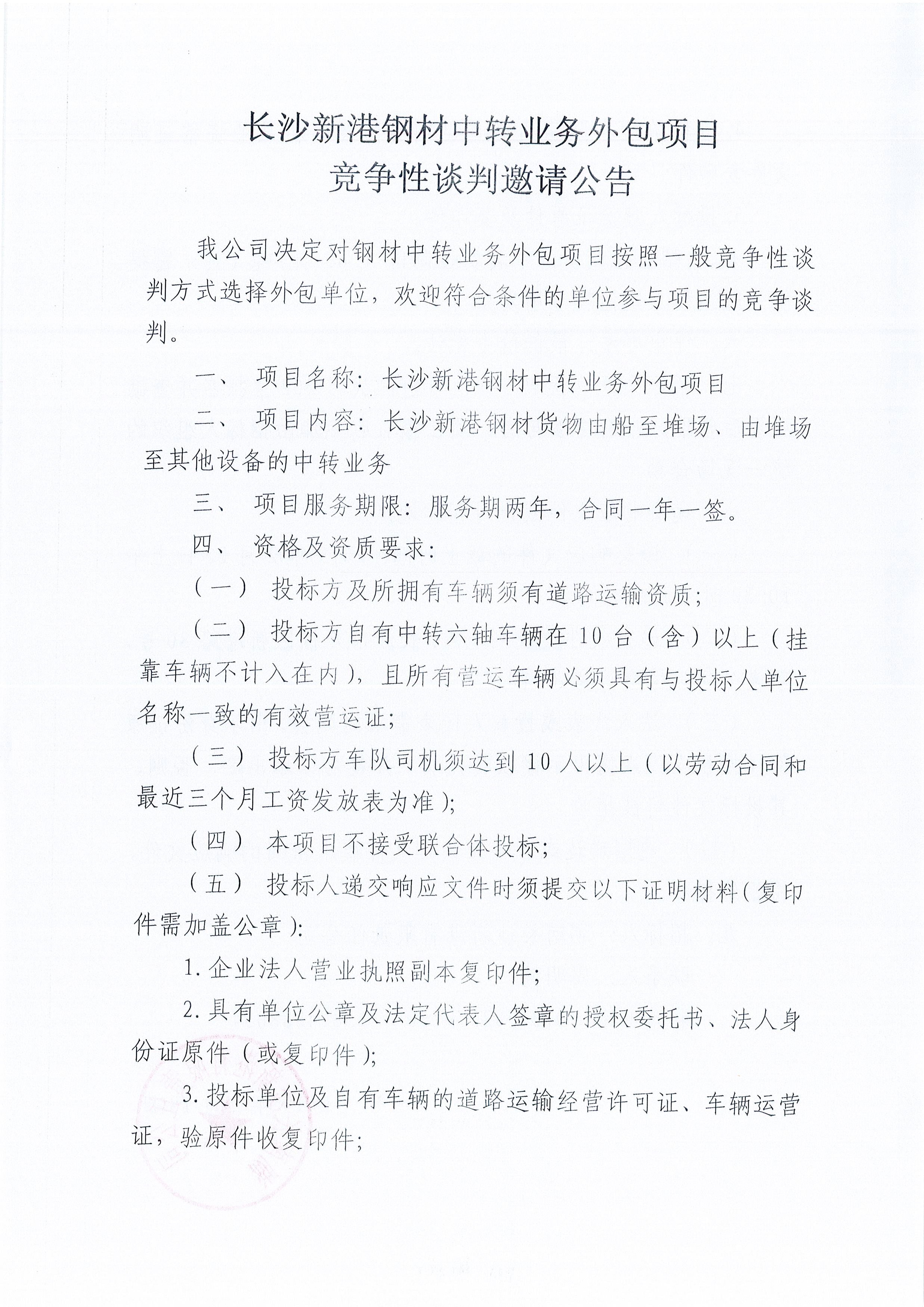 長(zhǎng)沙新港鋼材中轉(zhuǎn)業(yè)務(wù)外包項(xiàng)目競(jìng)爭(zhēng)性談判邀請(qǐng)公告