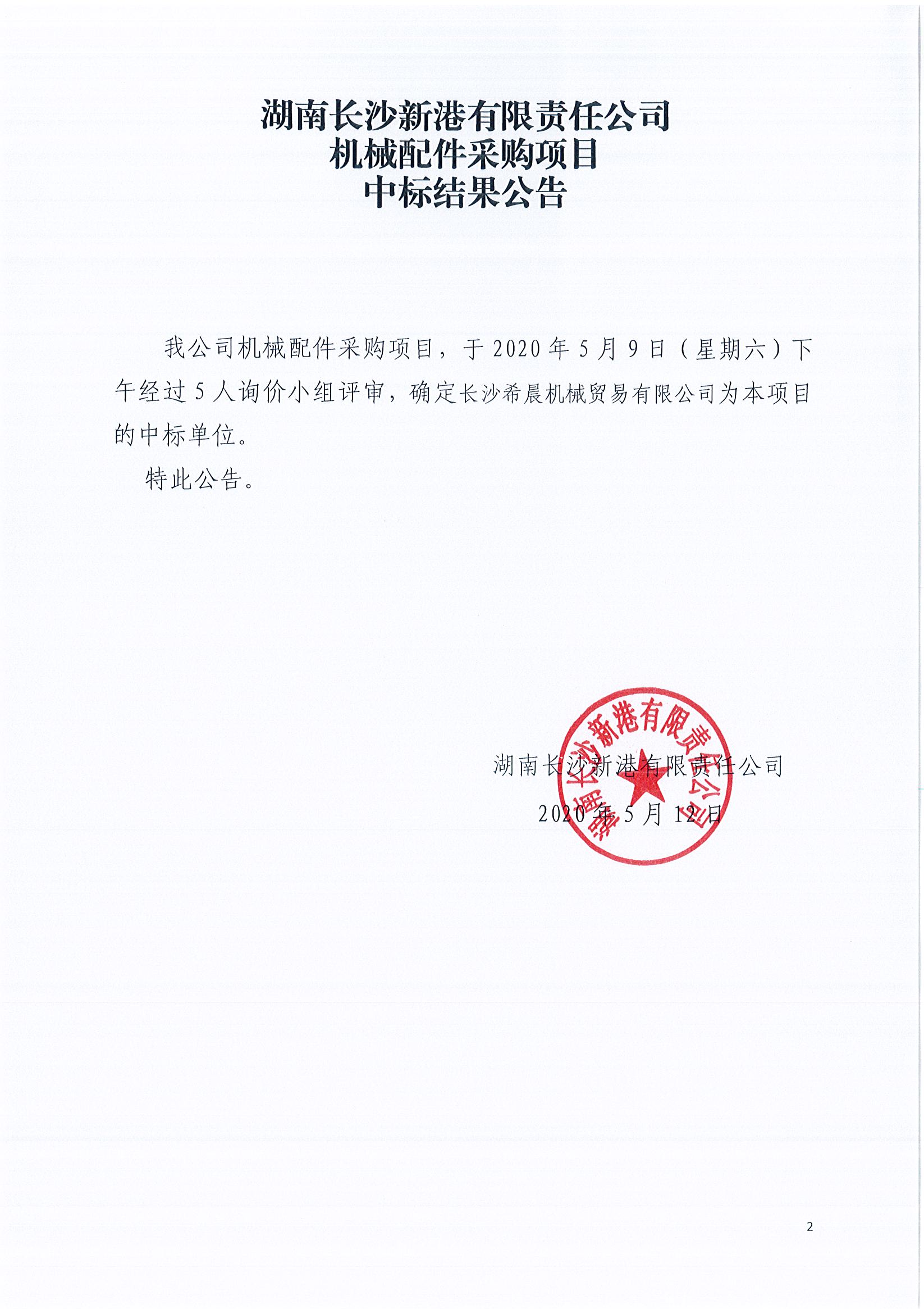 機(jī)械配件采購(gòu)項(xiàng)目《中標(biāo)結(jié)果公告》