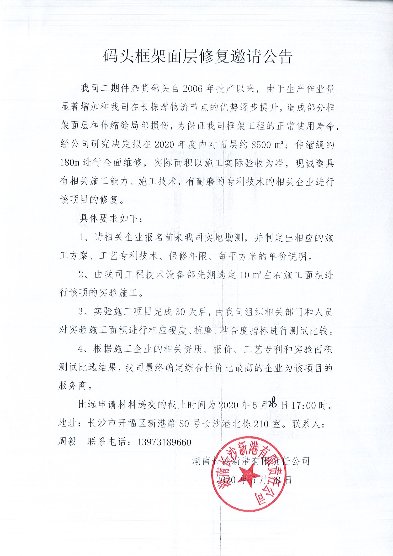 碼頭框架面層修復(fù)邀請(qǐng)公告